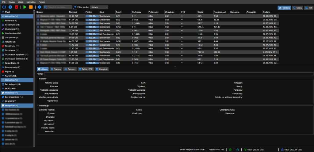 Panel zarządzania plikami torrent