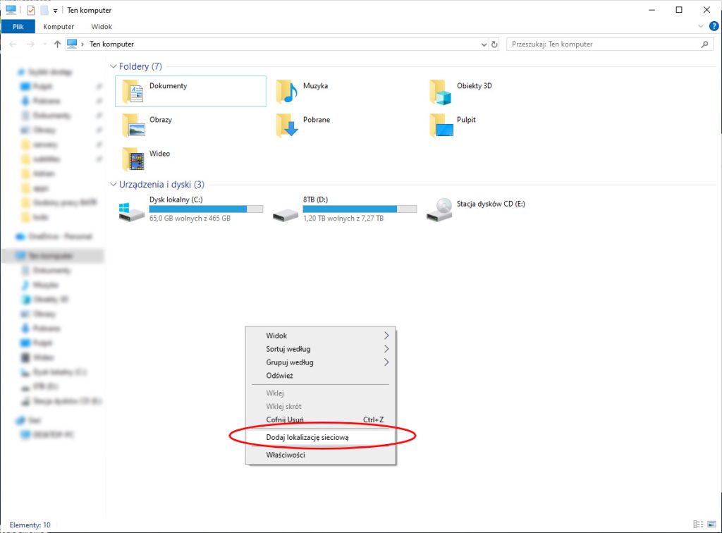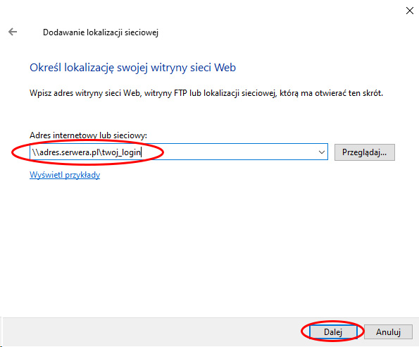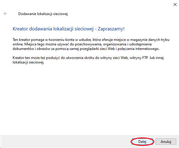 Dodanie lokalizacji sieciowej do lokalnego komputera